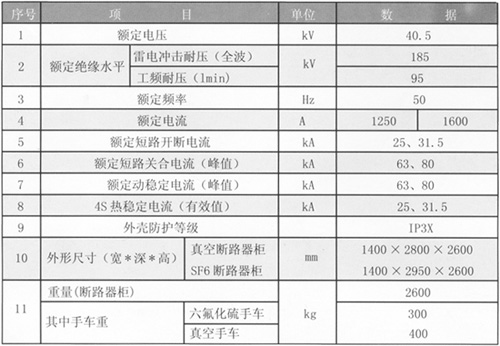 2.1開關(guān)柜主要技術(shù)數(shù)據(jù)見表1
