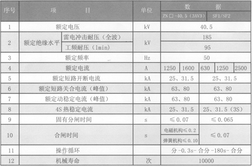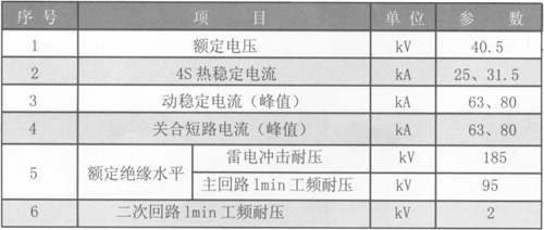 表1 2.2斷路器主要技術(shù)參數(shù)見表2