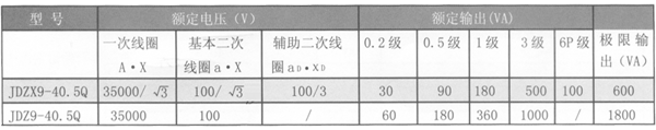 2.5 JDZX9-40.5Q型及JDZ9-40.5Q型電壓互感器主要技術(shù)參見表5